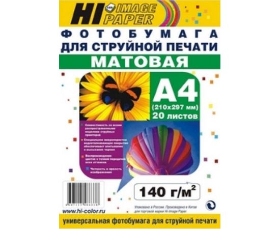 Фотобумага A4 140г/м2, 20 листов, матовая (Hi-Image) (A201549)