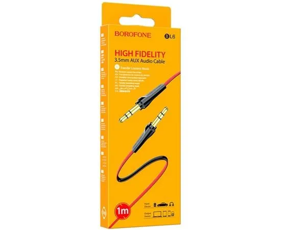 Кабель Audio AUX 3.5мм (m) -> 3.5мм (m) 2м (Borofone, BL6) красный (6931474746436)