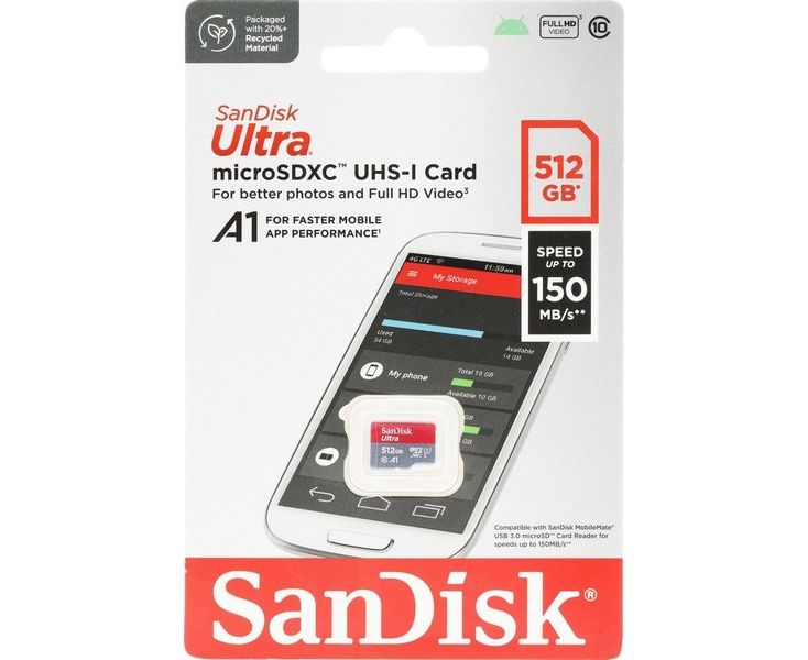 Карта памяти MicroSDXC 512GB Class 10 UHS-I U3 V30 A1 без адаптера (SanDisk) (SDSQUAC-512G-GN6MN)