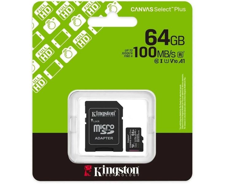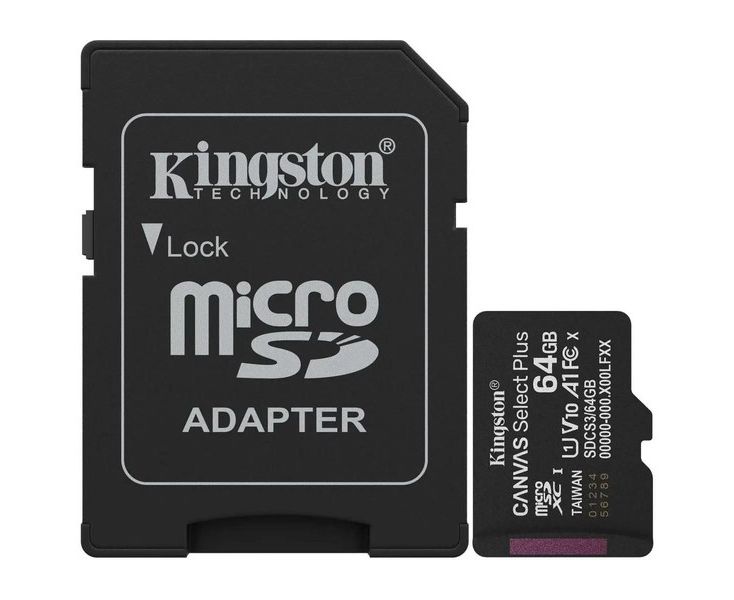 Карта памяти MicroSDXC 64Gb Class 10 UHS-I Canvas Select Plus + адаптер (Kingston) (SDCS3/64GB)