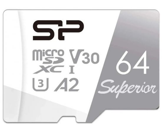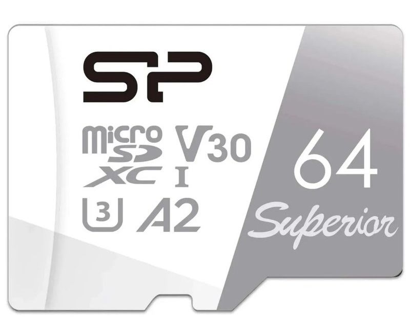 Карта памяти MicroSDXC 64Gb Class 10 UHS-I U3 V30 A2 + адаптер (Silicon Power, Superior Pro A2) (SP064GBSTXDA2V20SP)