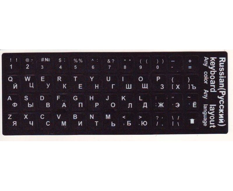 Наклейка для клавиатуры Рус/англ, черный фон, белые буквы