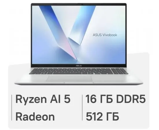16"/1920 x 1200/Матовый/IPS/60 Hz/AMD Ryzen AI 5 330/Количество ядер: 4/DDR5 16Gb/без HDD/SSD-накопитель: 512 GB/AMD/AMD Radeon 820M/Привод отсутствует/без LAN/WiFi b/g/n/ac/ax/Bluetooth 5.3/Порты: HDMI, Разъём наушники/микрофон/USB порты: USB 3.0 x 2, Type-C 3.0 x 2/Нет/Без ОС/3Cells 42 Wh/Вес 1.88кг/357 x 250.6 x 19.9 мм/Подсветка клавиатуры: Есть/Серебристый/