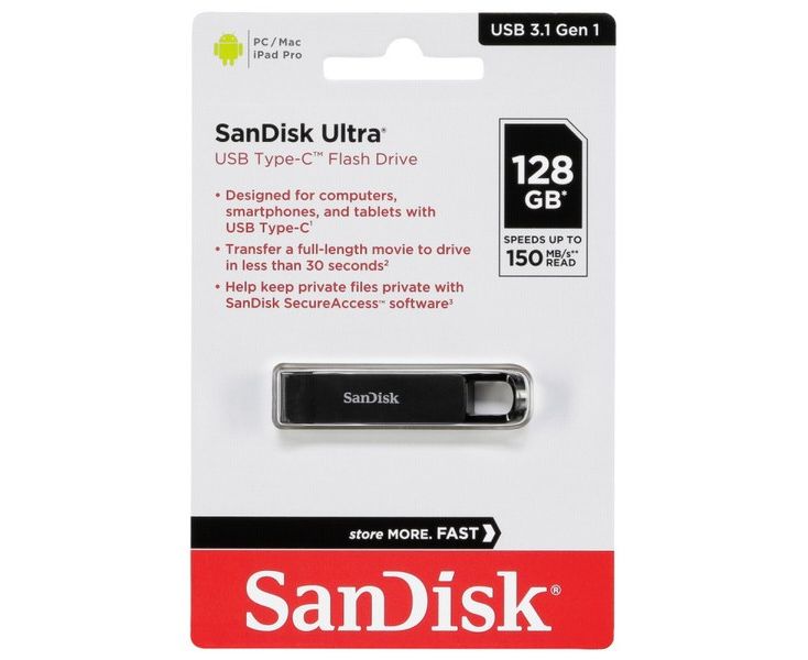 USB Flash-накопитель 128Gb USB 3.1 Type-C (SanDisk, Ultra Type-C) (SDCZ460-128G-G46)