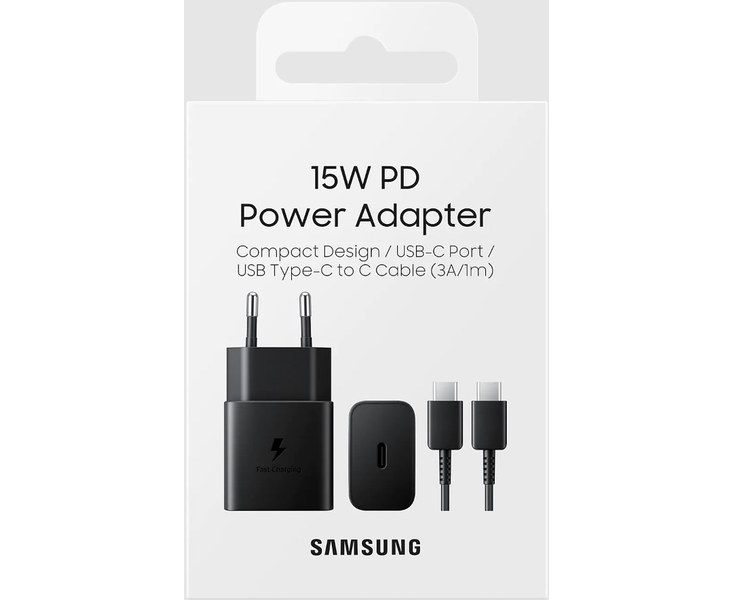 Зарядное устройство Samsung, USB C, PD2.0(15W) + кабель Type-C, черный (EP-T1510XBEGRU)